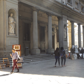And our first port of call is adjacent to this square, the Uffizi Gallery.